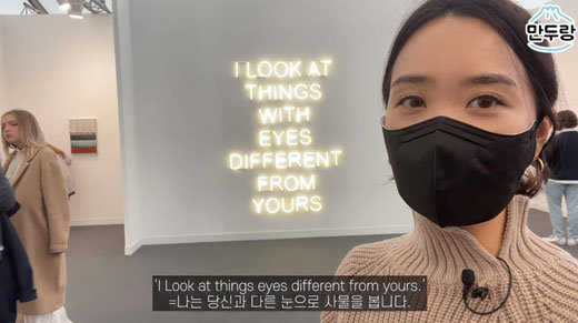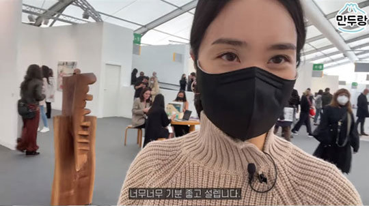 5일 김민지가 운영하는 유튜브 채널 \'김민지의 만두랑\'에는 \'여기가 영국 최고의 아트페어! 한번 둘러볼까?\'라는 제목의 영상이 게재됐다. 머리를 깔끔하게 올려 묶은 김민지의 자연스러운 민낯이 눈길을 끌었다.