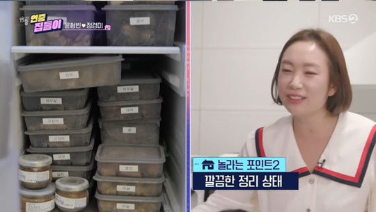 정경미는 "한 달 전 정리수납 전문가 자격증을 땄다"면서 정돈된 집안을 전격 공개했다. 특히나 상부 수납장을 떼버려 시원한 느낌을 주는 주방과 빼곡하게 가득 찬 냉장고 내부마저도 정리가 되어있는 모습에 이휘재는 놀라워했다.