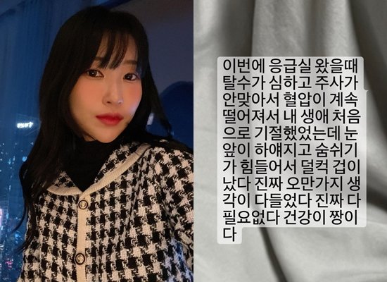 이후 이세영은 “이번에 응급실 왔을 때 탈수가 심하고 주사가 안 맞아서 혈압이 계속 떨어져서 내 생애 처음으로 기절했었는데 눈앞이 하얘지고 숨쉬기가 힘들어서 덜컥 겁이 났다. 진짜 오만가지 생각이 다 들었다. 진짜 다 필요없다. 건강이 짱이다” 상황을 전했다.