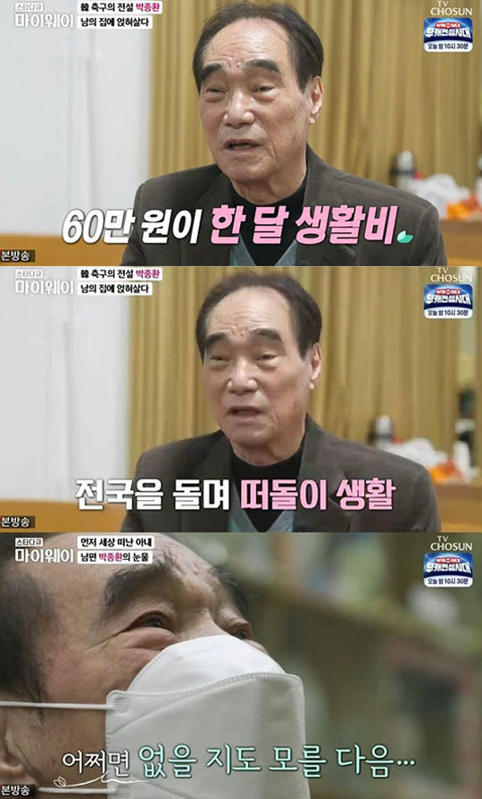 현재 일정한 거처도 없이 떠돌이 생활 중인 박종환 전 감독은 “누가 보면 화려할 거 같겠지만 정말 비참하게 살아온 삶이다. 노령연금 30만원과 아들이 보내는 용돈 30만원으로 산다. 사는 게 엉망”이라고 말했다.
