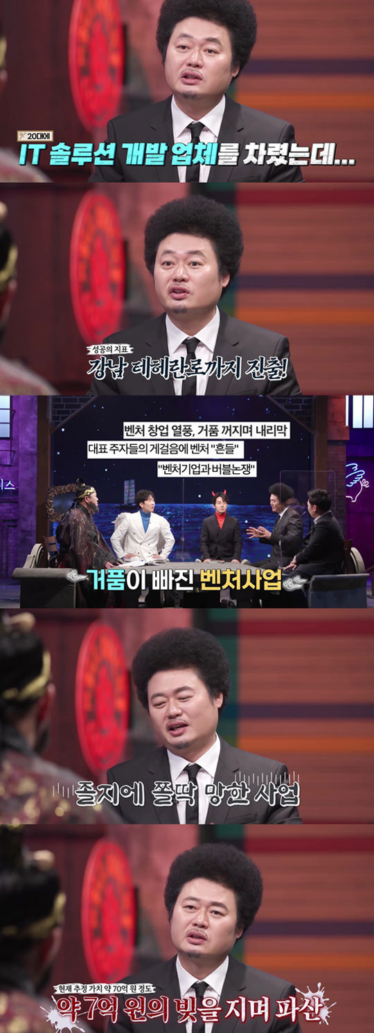 개그맨 윤택이 데뷔 전 IT 사업 실패로 파산했던 과거를 털어놨다.