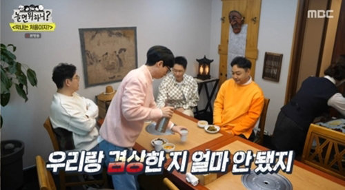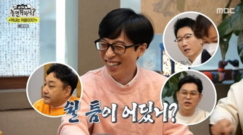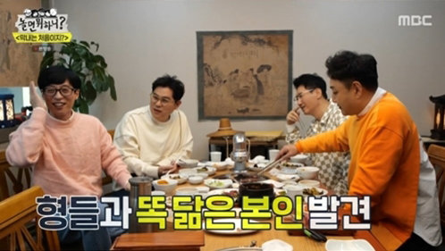 감동도 잠시, 식당으로 자리를 옮긴 ‘조동아리’ 형들은 본격 막내 기강 잡기를 하며 ‘유재석 몰이’를 시작했다. 형들은 “물 좀 따라봐라”, “고기 구워라”, “수저 세팅 안 하니?” 등 막내에게 심부름을 시켰다. 유재석은 고기 굽는 것에도 훈수를 두고, 양념 갈비 주문을 칼 차단하는 형들에게 “이럴 거면 따로 먹어”라며 외쳤다. 막내가 쉬는 틈을 못 보는 형들의 장난과, 데뷔 31년 차에 수발을 드는 막내 유재석의 모습이 웃음을 유발했다.