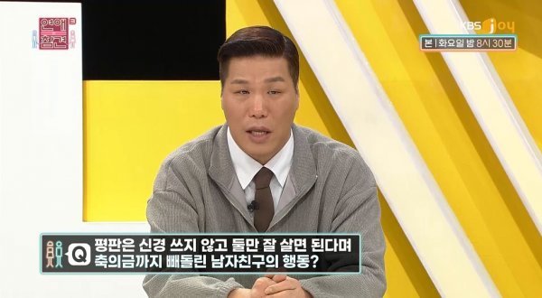 지난 8일 방송된 KBS Joy 예능프로그램 '연애의 참견 시즌3' 114회에서는 25세 동갑내기 남자친구와 연애 중인 고민녀의 사연이 소개됐다.
