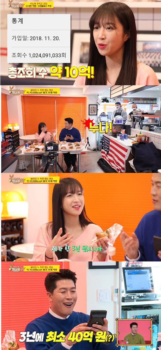 그런 가운데 김병현은 쯔양에게 “10억 뷰면 수익이 얼마 정도 되나요?"라 물었고 쯔양은 귓속말로 조회수 당 약4~5원 정도라 답했다. 깜짝 놀라 수입을 계산하던 김병현은 “내가 이러고 있을 때가 아니었네”라며 개인 방송에 대한 욕심을 드러냈다. 그러면서 김병헌은 약 40억 원의 수익을 기록한 쯔양에게 “누나”라고 불러 웃음을 줬다.