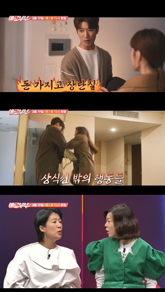 19일 방송될 ‘애로부부’ 예고편에서 “악랄한 남편의 만행이 알려지는 그날까지…”라며 남편의 실체를 폭로하고자 하는 아내가 등장했다. 스포츠 스타로 반듯한 이미지와 달리, 남편은 “작작 좀 써라”라고 하며 아내의 머리를 밀어버리기도 하고 “가지고 가라”라며 돈을 가지고 장난질을 해 분노를 자아냈다. 상식 밖의 행동을 하는 남편의 추악한 모습에 MC 안선영은 분노했고, MC 홍진경과 최화정은 “저 정도면…누굴까?”라며 정체를 궁금해했다.