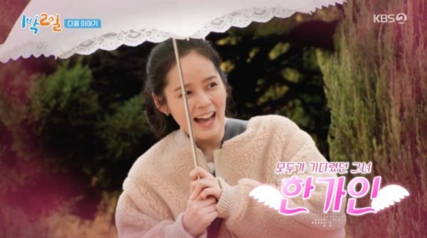 27일 밤 공개된 KBS2 ‘1박2일4’ 다음주 예고편에서는 특별 게스트의 등장이 예고됐다. 따스한 봄날을 맞아 마련된 꽃놀이 특집에 찾아온 여성 게스트는 연정훈의 아내이자 배우 한가인. 그의 등장에 ‘1박2일4’ 멤버들은 믿기지 않는 듯 입을 틀어막았다.
