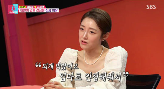 서하얀은 엄마에게 처음으로 임창정과의 만남을 고백했던 순간을 떠올리기도 했다. 서하얀의 엄마는 당장 헤어지라며 강하게 반대했다고. 서하안은 “’내가 만나본 남자 중에 나를 행복하게 해주고 가장 사랑해주는 남자다. 이 남자 없으면 내가 행복하지 않을 것 같다’라고 했더니 엄마가 많이 무너지셨다”라고 전했다.