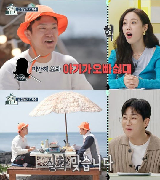 조준현은 조준호의 소개팅 이야기에 웃음이 터졌고, 조준호는 “또 신났네. 이러니까 내가 이야기를 안 하는 거다”고 한숨을 쉬었다. 또 딘딘은 “내가 볼 때 아기도 없고 돌싱도 아니다”고 소개팅녀가 핑계를 댄 거라고 추측했다. 이에 조준호는 “아기는 안 만났다. 너무 단호하게 계산은 내가 할 테니까 많이 먹고 가라고 하더라”고 당시 분위기를 전했다. 딘딘은 “그래도 공짜 밥 먹었네”라고 말해 또 한 번 스튜디오를 초토화 시켰다.