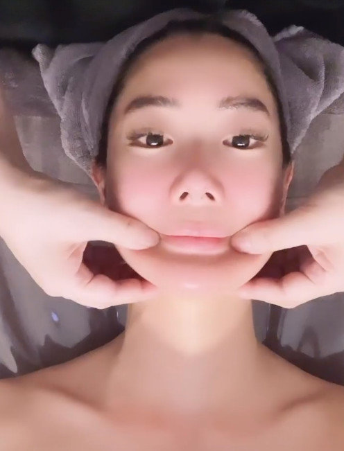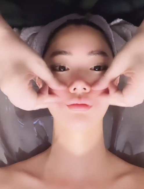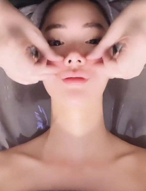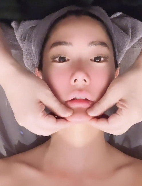 클라라가 얼굴 마사지를 받으며 영상을 찍었다.