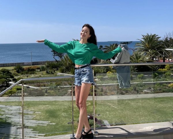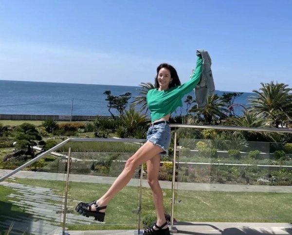 함께 공개한 사진 속 이소연은 제주 자연을 배경으로 발랄한 표정과 포즈를 취하고 있다. 손바닥만한 반바지를 입고 드러낸 근육질의 다리가 인상적이다.