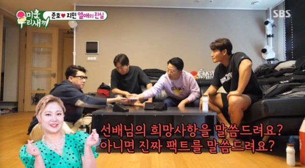 김준호는 박나래와 전화 연결이 되자, 다짜고짜 “박나래, 나 (김)지민과 사귀지?”라고 물었다. 전화 넘어 박나래는 어이없다는 듯 “응? 내가 어떻게 말을 해야 하는 거냐”고 되물었다. 김준호는 “팩트를 말해 달라. 너는 알지 않냐”고 했다. 박나래는 “선배 희망 사항을 말할까 아니면 진짜 팩트를 말할까”라고 다시 물었다.