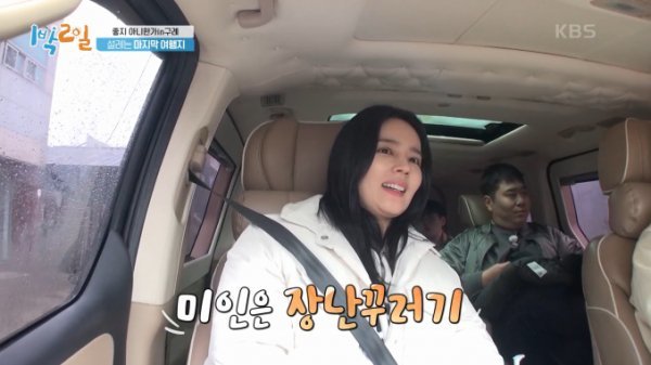 17일 방송된 KBS2 ‘1박2일 시즌4’에서는 지난주에 이어 연정훈의 아내이자 배우 한가인이 특별 게스트로 함께한 여행이 그려졌다.