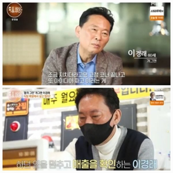 일을 마친 후 찾은 곳은 고깃집 쪽방이었다. 가게 안 작은방이 숙소이자 아지트였던 것. 이경래는 "집에 왜 안 들어가시냐"는 질문에 "(아내가) 들어오는 거 별로 안 좋아하더라"고 농담하며 "에어컨도 있고 난방도 다 되고 그러니까 TV 보다가 여기서 자고 아침에 (나가고) 행동반경이 짧아지니까"라고 답했다.