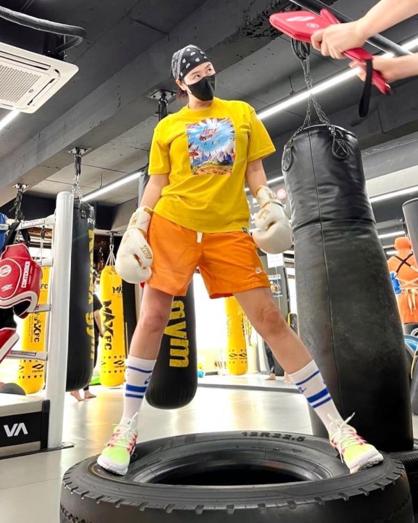 김혜수는 27일 인스타그램 계정에 “무에타이”라는 글과 사진을 올렸다. 공개된 사진에는 글러브를 낀 김혜수 모습이 담겼다. 강한 눈빛을 쏘아 대는 김혜수는 금방이라도 한대 칠 기세다.