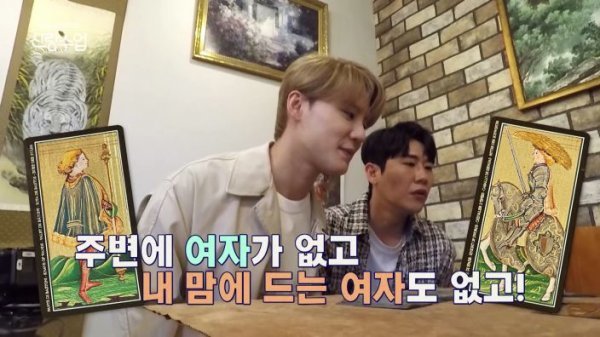 마지막으로 이들은 타로점을 보며 가까운 미래의 ‘연애운’을 점쳤다. 이 과정에서 영탁은 “여자가 한동안 없었고, 여자를 만날 상황도 아니다”라며 “일이 너무 바쁠 것”이라는 전문가의 ‘팩폭’으로 인해 ‘실성’ 상태에 빠졌다. 김준수 또한 “걱정이 많아 연애를 시작조차 하지 않는 스타일”이라며 “연애 카드 대신 일 카드만 뽑았다”는 지적에 한숨을 푹푹 쉬었다. 마지막으로 전문가는 “두 사람 모두 주변 어른들에게 소개를 받아야 이성을 만날 수 있다”라며, “마음에 드는 인연을 언제 만날지 모른다”고 조언했다.