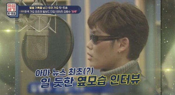 김범수는 얼굴 없는 가수로 활동했던 시절이 재조명된다. 데뷔 후 4년 간 방송 출연을 하지 않아 대중의 궁금증을 한 몸에 받았던 그는 한 곡 때문에 얼굴을 공개할 수밖에 없는 상황을 맞닥뜨렸다고. '하루' 영어 버전이 미국 빌보드 싱글즈 핫 세일즈 차트 51위에 진입했기 때문. 방탄소년단보다 먼저 빌보드에 진출한 김범수의 옆모습 인터뷰는 아직까지도 그의 흑역사 자료로 꼽힌다는 귀띔이다.