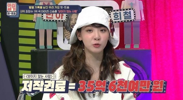 신승훈도 빠질 수 없다. 그는 1990년대 '보이지 않는 사랑'으로 14주 연속 1위를 차지해 이번 차트 상위권에 안착한다. 신승훈은 '보이지 않는 사랑'으로 35억 6천여만 원의 저작권료를 벌어들여 MC 김희철, 김민아의 부러움을 산다.