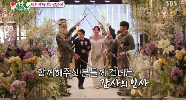이날 미우새 아들들이 총출동한 박군과 한영의 결혼식 현장도 최초로 공개됐다. 이상민의 사회로 진행된 박군 결혼식에서 두 사람은 주례 없이 서로를 소개했다. 박군은 "내 사랑 지영아, 행복하게 잘 살자. 내가 정말 잘할게"라고 말했다. 한영은 "저는 시력이 나쁘고 귀가 밝은데, 이 사람은 시력이 좋고 귀가 어둡다. 천생연분이다. 행복하게 잘 살자. 사랑해. 파이팅"이라고 했다. 이에 박군은 "나는 오랑해"라고 화답해 모두의 부러움을 샀다.