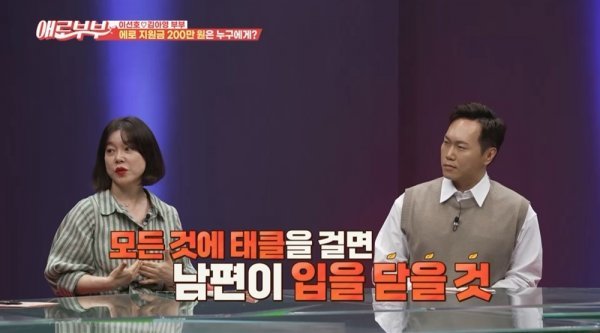 한편, ‘속터뷰’에는 야간 화물 택배 기사인 남편 이선호와 헤어 아티스트 아내 김아영이 등장했다. 남편 이선호는 “아내가 저를 조종하고 뭘 하려고 하면 다 태클을 걸어서 자존심이 상하고 많이 위축된다”라고 고민을 의뢰했다. 아내 김아영은 남편의 헤어스타일, 친구들과의 만남, 사회생활 방식까지 전부 컨트롤하고 있었다. 김아영은 “남편이 원인 제공자다. 집착을 해달래서 한 것이고, 컨트롤 하지 않으면 현실에 안주하려 하니 그런 거다”라며 “내가 없으면 남편이 혼자서 할 수 있는 게 없다”라며 반박했다.