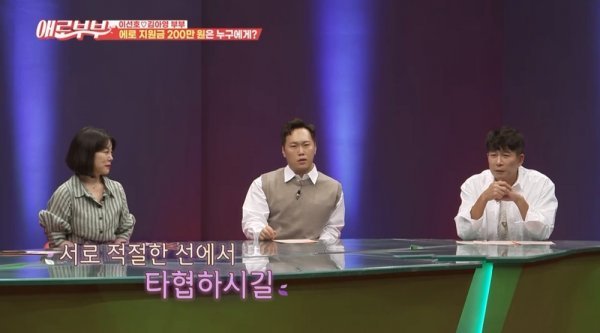 컨트롤이 심한 아내에 MC 최화정은 “모든 것에 태클을 걸면 말을 할 수 없다”라며 남편의 입장을 안타까워했다. MC 양재진은 “남편은 의존적인 성향의 사람이라 5년 동안 아내에게 맞췄던 것이다. 아내는 ‘나는 여기까지만 하겠다’라는 결심이, 남편은 ‘이것만큼은 안돼’가 필요하다. 서로 적절한 타협선을 정해야 한다”라고 조언했다. MC들은 투표결과 만장일치로 남편 이선호의 손을 들어주었다.