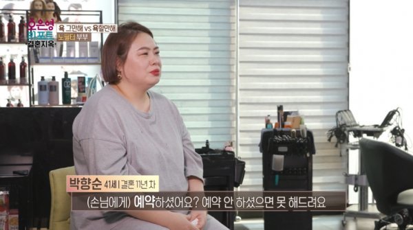 지난 20일 오후 방송된 MBC '오은영 리포트 – 결혼지옥' 5회에서는 서로에게 필터 없는 고성과 폭언을 쏟아내는 ‘노필터 부부’가 오은영 박사를 만났다. 전라북도 정읍시에서 함께 미용실을 운영하며 24시간 껌딱지처럼 붙어있는 부부. 이른 아침 미용실을 찾은 어린 손님에게 ‘곰국’을 챙겨 줄 정도로 따뜻한 모습을 보여준 것도 잠시. 아내는 손님 앞에서도 남편을 끊임없이 하대하고 심지어는 망설임 없이 “XX”라고 욕설을 내뱉어 스튜디오를 충격에 빠뜨렸다. MC 소유진은 연신 당황하며 ‘세다...’를 연발했고, 김응수는 ‘솔직히 듣기 거북했다’며 오프닝만 보고 집에 가려고 할 만큼 언짢아했다.