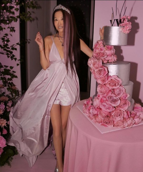 함께 공개된 사진 속에는 베라 왕이 73번째 생일 파티를 즐기는 모습이 담겼다. 베라 왕은 핑크색 투톤 헤어를 하고 다리가 훤히 드러나는 짧은 드레스를 입어 파티의 주인공임을 뽐냈다.