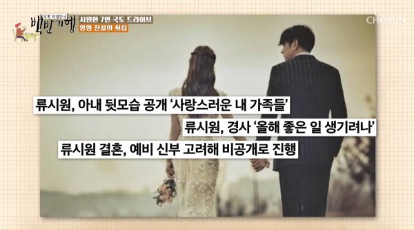 류시원은 그동안 베일에 싸여있던 아내에 대해서도 입을 열었다. 그는 “연예인이 아니다 보니, 비공개로 결혼했다. 잠깐 어려운 시기를 겪고, 인생에서 소중한 결정을 해서 너무 공개되면 상처가 될 것 같았다”라고 운을 뗐다.