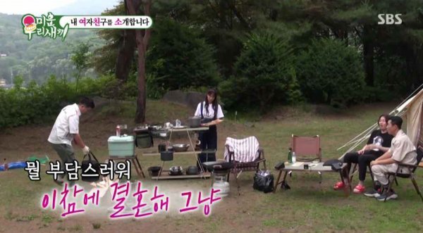 김지민은 결혼 이야기가 부담스럽다고 했지만 김준호는 “이참에 결혼해 그냥”이라고 또 한 번 어필했다. 김희철과 김종민이 깜짝 프러포즈에 놀라자 김지민은 “멋없게 저렇게 화로를 갖고 오면서 말한다”고 받아치며 마무리했다.