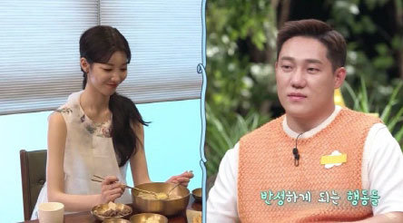 식사 후 김장훈은 “‘신랑수업’을 하다 보니 실제 결혼 생각이 들진 않느냐”며, “일하다가 만난 사람 중 괜찮다 싶었던 여자분이 없냐”고 물었다. 이에 영탁은 “없었다”고 칼대답했고, 김장훈은 “결혼을 해야 하는 시기가 있다. 놓치면 나처럼 된다”고 ‘자폭’했다. 이어 김장훈은 “스피드 스케이팅 해설가인 제갈성렬의 중매로 비대면 소개를 받았는데, 루마니아 분이었다”며, “너무 마음에 들어서 어머니의 허락까지 받았지만, 직접 만나려면 비행기만 15시간 타야 하더라. 결국 선자리가 결렬됐다”는 ‘맞선 비하인드’를 밝혀 모두를 폭소케 했다. 경험에서 우러난 김장훈의 ‘찐 조언’과 신세 한탄이 오가며, 두 싱글남의 화기애애한 만남이 마무리됐다.
