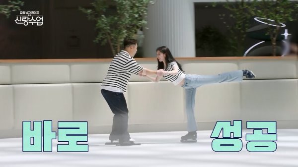 마지막으로, ‘신랑수업’ 공식 1호 커플 모태범♥임사랑은 커플티를 맞춰 입고 ‘아이스링크 데이트’를 즐겼다. 두 사람은 양 손을 맞잡고 커플 스케이팅을 하며 꽁냥꽁냥한 시간을 보냈다. 그러던 중, 모태범은 “앞으로 오랜 시간을 같이 지냈으면 좋겠다”면서 시계를 선물해 임사랑을 감동케 했다. 이를 본 홍현희는 “이건 거의 프러포즈급!”이라고 환호성을 질렀다.