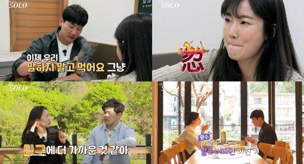 27일 방송한 ENA PLAY와 SBS PLUS의 리얼 데이팅 프로그램 ‘나는 SOLO’에서는 광수를 둘러싼 솔로녀들의 로맨스 대전이 더욱 치열해졌다. 이날 영숙은 영호와 영식과의 관계를 정리하고 “광수님이 좋아요”라며 직진을 선언했고, 광수의 대시에도 오락가락 했던 옥순마저 “솔직하게 얘기할게”라며, 광수 앞에서 눈물의 고백을 해 충격을 안겼다. 여기에 정숙과 순자도 광수의 매력을 인정해, ‘솔로나라 9번지’의 로맨스 대격변을 예고했다.