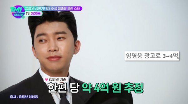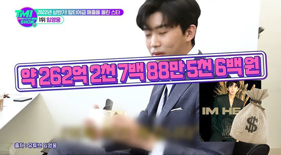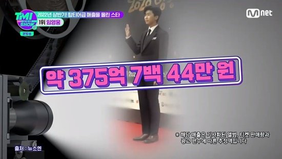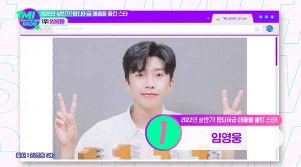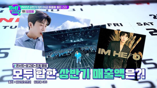 27일 방송된 Mnet \'TMI 뉴스쇼\'에서는 \'2022년 상반기! 탑티어급 매출을 올린 스타’ 차트를 다뤘다. 이날 1위는 단연 임영웅이 차지했다.