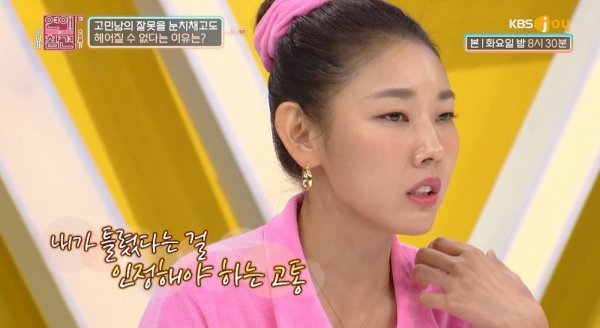 이런 고민남의 행동에 대해 곽정은은 "고민남은 인정하지 않겠지만, 이런 일이 벌어지길 마음 깊은 곳에서 바라고 있었던 거다. 내 마음이 단단하면 어떤 상황이라도 쳐낼 수 있다. 본인이 상황을 끌어당겨 놓고 실수라고 하는 건 도망치는 것과 같다"고 판단했다.