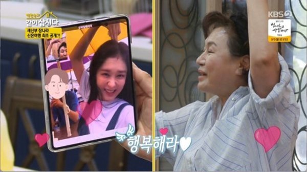 장나라는 남해 다랭이마을에서 신혼여행 중이라며 “너무 좋다, 다 예쁘다”라고 했다. 이어 장나라는 “신랑 보여주면 안돼?”라는 박원숙 말에 남편을 소개했다. 박원숙은 “너무 잘생기고, 예쁘다”며 흐뭇한 듯한 미소지었다. 장나라는 박원숙과 이경진에게 남편이 촬영감독이라고 소개하기도 했다.