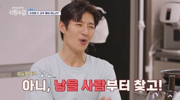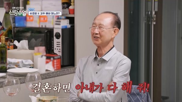이날 손호영은 ‘태양열 학회 공학박사’인 아버지를 집으로 초대했다. 손호영 부친은 아들 집에 발을 들여놓자마자 이곳저곳 스캔한 뒤, 곧바로 결혼 압박에 들어갔다. 손호영 부친은 아들이 요리한 소고기구이와 ‘외국식 육회’를 먹으면서도 연신 “아기는 몇 명 낳을 거야?”, “무슨 전공을 한 여자가 좋아?” 등 결혼 질문을 퍼부었다. 급기야 손호영 부친은 “아빠는 음악 하는 여자가 좋다. 골프선수도 괜찮아”라며 원하는 며느리 상을 콕 집어 손호영을 어질어질하게 만들었다.