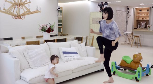 한지혜는 지난 주 ‘편스토랑’에서 결혼 10년 만에 기적처럼 생긴 딸 윤슬이와의 일상을 공개, 많은 화제를 모았다. 이번 주는 어떤 이야기가 공개될지 관심이 집중된 가운데 VCR 속 한지혜는 생후 12개월(녹화 시점) 딸 윤슬이가 잠시 잠든 틈을 타 거실에서 부지런히 움직이고 있었다. 땀범벅이 될 때까지 홈 트레이닝을 반복하고 있던 것. 알고 보니 한지혜는 최대한 시간을 쪼개 운동을 하고 있고 집에서도 틈날 때마다 고강도의 홈 트레이닝을 한다고 밝혔다.