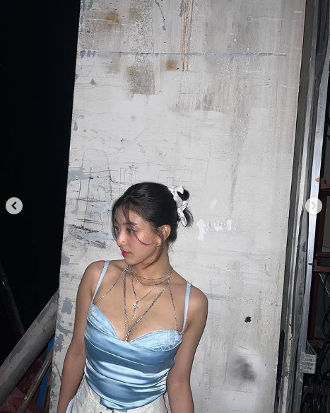 지효는 26일 자신의 인스타그램을 통해 그룹의 신곡 ‘Talk that Talk’을 홍보하며 자신의 사진 여러장을 공개했다. 사진 속 지효는 가슴라인이 과감히 디자인된 초미니 원피스를 입고 당당한 포즈를 취하고 있다. 활기 넘치는 ‘인간 여름’ 느낌. 그는 멋진 S라인으로 보는 이들의 운동 욕구를 자극했다.