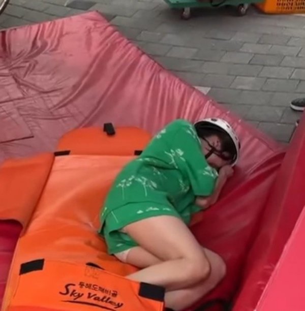 박하선은 “저거 타고 ‘쫄보’(겁쟁이) 되어 요즘 벌레만 봐도 너무 놀라요. 스릴 좋아하는 분들은 추천. 내 생애 제일 무서운 경험이었음. 너무 무서우면 웃는 스타일”이라고 했다. 또 박하선은 반바지 속 옷에 대해서는 “스킨색 바지 입었다”고 해명했다.