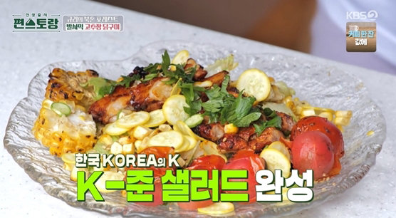 이어 김규리는 고추장과 발사믹 식초를 섞어 만든 소스를 바른 닭고기를 그릴에서 구웠다. 한옥이기에 가능한 로망이었다. 김규리는 닭구이를 샐러드 위에 얹어 ‘K-준 샐러드’를 만들었다. 여기에 틈새 텃밭에서 딴 깻잎과 바나나로 만든 깻잎 바나나 주스를 더해 자신만의 건강한 브런치 한 상을 완성, 새소리와 함께 북촌 한옥에서 브런치를 즐겼다.