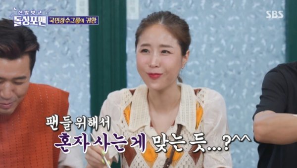 탁재훈은 “신지가 결혼한다고 발표하면 팬들이 서운해 할 것 같다”면서 “너는 그냥 혼자 사는 게 맞는 것 같다. 팬들을 실망시키면 안 되지”라고 말했다.