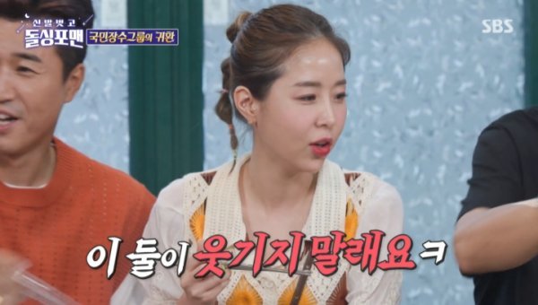 김준호가 “나도 군대에 있을 때 신지 좋아했다”고 말하자 탁재훈은 “너는 여자를 너무 좋아해”라고 농담했다. 옆에 있던 임원희도 “신지 다들 좋아하지. 나도 좋아한다”고 팬심을 드러냈다.