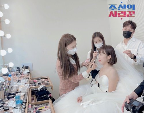 공개된 사진 속 여러 스태프들에게 둘러싸여 신부화장을 받고 있는 오나미의 모습에서는 결혼식 날 신부에게서만 느껴지는 청초한 아름다움이 돋보인다.