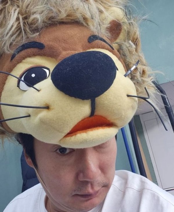 박지연은 최근 인스타그램 계정에 “굿모닝”이라는 글과 사진을 올렸다. 공개된 사진에는 사자 탈을 쓴 이수근 모습이 담겼다. 이수근 막 일어난 듯한 모습.