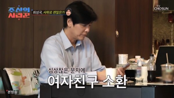 11일 첫 방송된 TV CHOSUN ‘조선의 사랑꾼’에서는 결혼을 준비하는 최성국이 예비신부의 가족과 만나는 못브이 그려졌다. 이날 최성국은 예비신부와의 많은 나이 차이를 처음에는 모르고 사랑에 빠졌다며 “결혼 과정을 영상으로 담아 보여주면 진정성이 있다고 느껴질 것 같아 이 프로그램 촬영을 결정했다”고 고백했다.