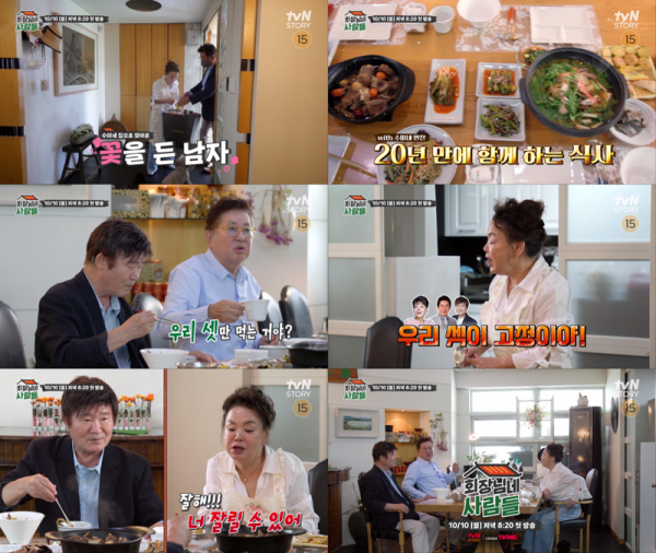 제작진에 따르면 김수미는 김용건과 이계인을 집으로 초대해 직접 차린 만찬을 대접한다. 세 사람은 오랜만에 만나 스스럼없는 대화를 이어간다. 김용건은 집에 초대한 김수미에게 꽃다발을 주면서 나중에 다시 반납해야 한다고 농담을 한다. 김수미는 71세에 막내가 된 이계인에게 “잘해. 너 잘릴 수 있어”라고 매서운 돌직구를 날려 웃음을 자아낸다.