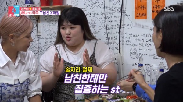 이날 이국주는 송해나가 남자를 불렀다고 하자 “너나 가져. 알아서 만날게”라면서도 궁금해했다. 합석한 남성은 이국주의 절친 개그맨 이상준이었다. 이국주는 “진짜 못 됐다. 우리 개그우먼들이 부르면 절대 안 나오면서”라고 따졌고 이상준은 “그러면 너도 모델 하든가”라고 받아쳐 웃음을 자아냈다.