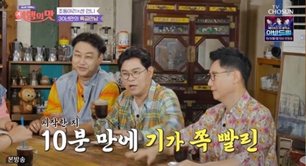 9월 30일 첫 방송된 ‘여행의 맛’은 아침까지 수다 떠는 개그계 대표 미친 입담 조동아리(김용만, 지석진, 김수용)와 대한민국 웃음 기강 잡는 화끈 입담 센 언니들(이경실, 박미선, 조혜련)의 컬래버 여행 예능이다.