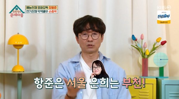 장항준은 19일 방송된 KBS2 ‘옥탑방의 문제아들’에서 “나는 현재 서울에 있고 김은희 작가는 부천에 살고 있다”고 밝혔다. 뜻밖의 별거 이유는 아이의 진학 때문. 그는 “아이가 부천에 있는 학교로 진학했다. 나는 서울에서 장모님과 살고 있다”고 설명했다.