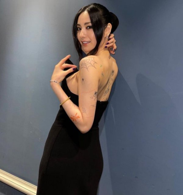 사진 속 나나는 어깨와 등 윗부분이 드러나는 검은색 드레스를 입고 진한 눈화장을 해 섹시한 분위기를 연출했다. 특히 어깨와 가슴 라인을 따라 그려진 거미줄, 장미, 꽃, 나비 등 문신을 다양한 포즈와 각도로 보여준다. 행복해보이는 나나의 표정에서 전신문신에 대한 만족감을 짐작할 수 있다.