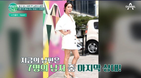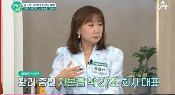 지난 26일 방송된 채널A \'행복한 아침\'에는 \'재혼 후 꽃길 걷는 방송인 이혜영, 상위 1% 부자 남편의 직업은?\'이라는 제목으로 이혜영 남편인 부재훈 MBK파트너스 대표를 소개했다.